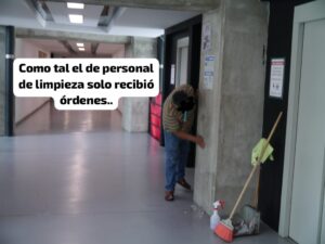 Es evidente que esto fue una orden directa de la administración, pues el personal de limpieza siempre ha mostrado respeto y consideración hacia los materiales colocados por los estudiantes. Esta vez fueron tres administrativos quienes actuaron como los verdaderos autores intelectuales del retiro de los carteles, entre risas se burlaban de los estudiantes, —Frases cómo “Bailale con tus guarachitos” se daba esta limpia— aunque, al parecer no esperaban la presencia de la prensa durante el acto.