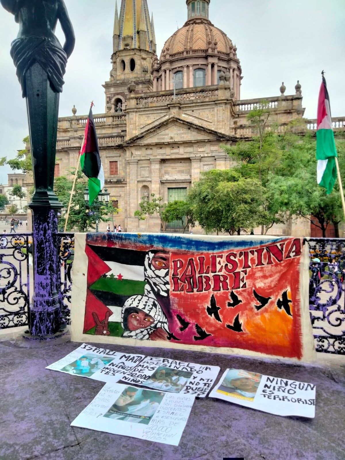 Esta mañana, en el quiosco de la Plaza de Armas de Guadalajara, el Comité de Solidaridad con Palestina GDL ofreció una rueda de prensa en la que manifestó su rechazo a la presencia de la secretaria de Turismo, @Michelle Friedman, a quien señalaron de tener afinidad política con una ideología supremacista y sionista, además de minimizar públicamente el genocidio del pueblo palestino.