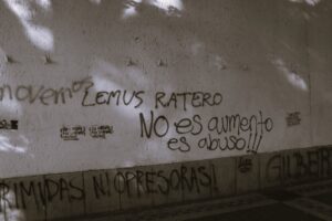 El pasado sábado 10 de enero del presente año colectivos populares, de madres y padres buscadores, estudiantiles y políticos marcharon pacíficamente junto al pueblo jalisciense contra la designación antidemocrática del alza del transporte público. A la marcha acudieron más de 600 personas en el centro histórico de Guadalajara con el fin de que se escuchara su voz flameante y frenar el garrote tarifario del transporte público de la mano del gobernador Pablo Lemus Navarro.